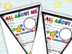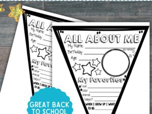 This all about me banner is perfect for the first day of school! This all about me banner will encourage kids to share details about themselves in a creative and fun way.